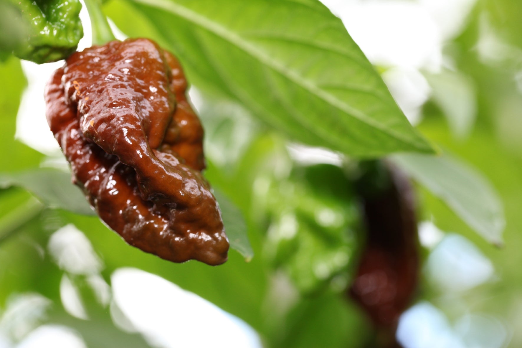 The heat level for this chilli is super hot! The Trinidad 7 Pod Douglah Cross Naga Morich Chocolate Chilli is around 850,000 – 1,100,00 Scoville Heat Units.
